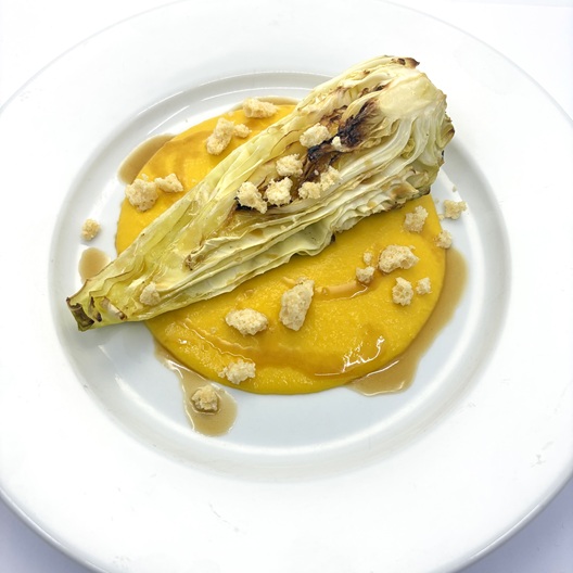 SPETSKÅL, PUMPAPURÉ: Butternutpumpa, SMÖR (laktosfri), GRÄDDE (laktosfri), muskot, salt & peppar. SOJASMÖR: SMÖR (laktosfri), Glutenfri soja (vatten, sojabönor, salt, ättika). PARMESANKRISP: MJÖLK, salt, mikrobiellt enzym.